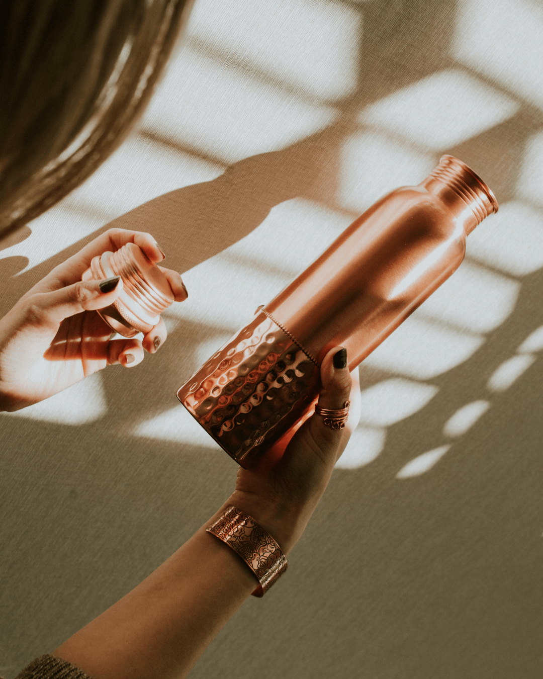 Uwaga: w wyniku utleniania kolor miedzianego dzbanka będzie się z czasem zmieniać. Ponadto na miedzi pojawiają się „plamy” w sposób naturalny. Oba zjawiska wynikają z właściwości czystej miedzi i nie mają negatywnego wpływu na jakość wody.