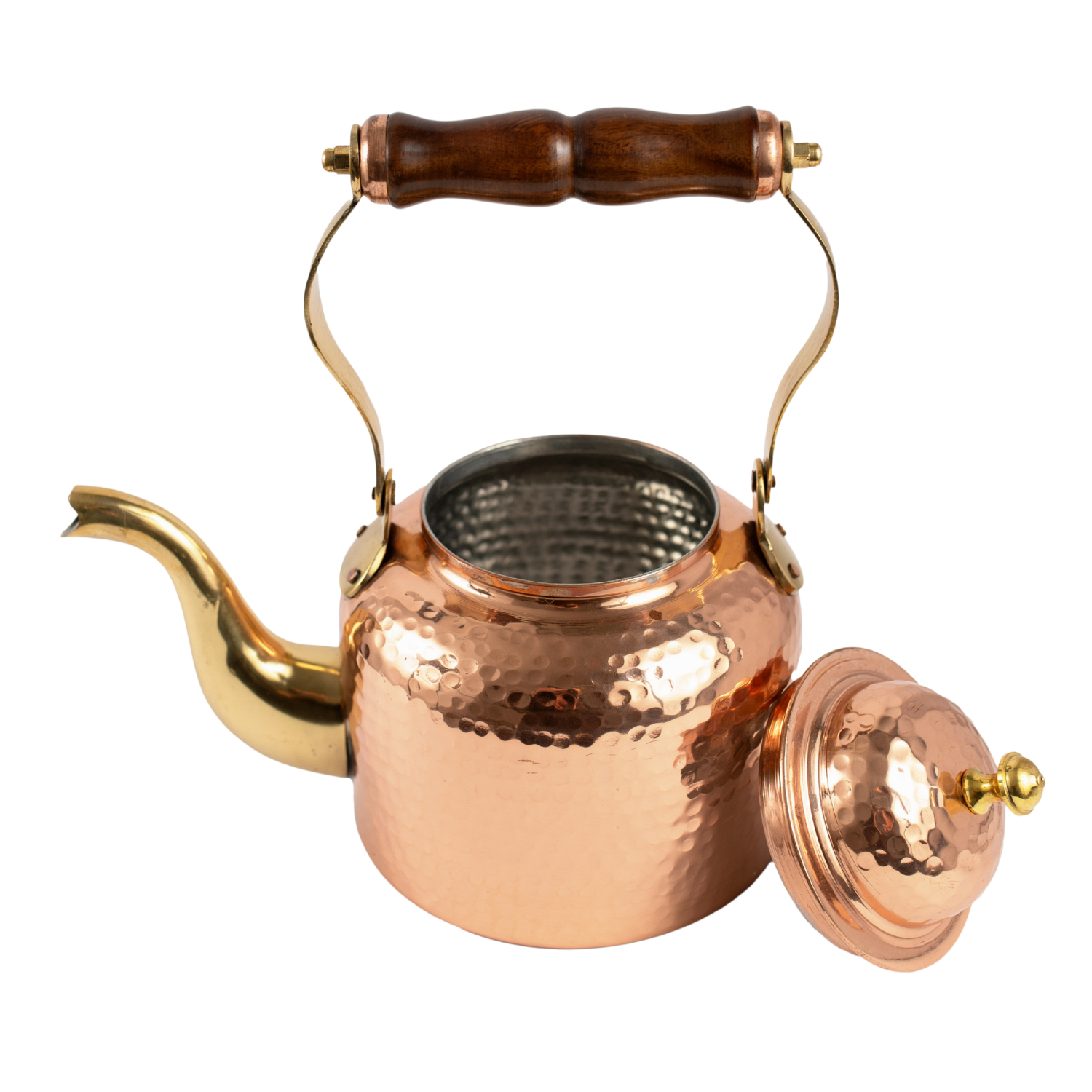 Wnętrze czajnika zostało pokryte warstwą cyny, dzięki czemu jest on bezpieczny i przeznaczony do gotowania wody. To rozwiązanie łączy estetykę miedzi z funkcjonalnością, pozwalając korzystać z czajnika w praktyczny sposób, bez kompromisów.
